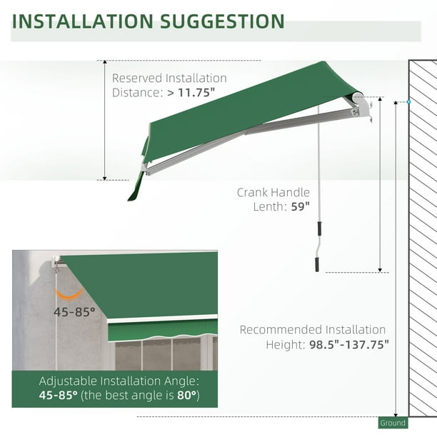 Outsunny 12 X 10 Retractable Awning Patio Awnings Sun Shade Shelter With Manual Crank Handle 280g M Uv Water Resistant Fabric And Aluminum Frame For Deck Balcony Yard Green Walmart Ca